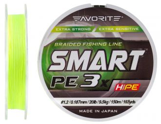 Шнур Favorite Smart PE 3x 150m #0.2 Fluo yellow